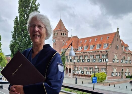 Het wapen van Zeist op de toga van trouwambtenaar Lia van Dijk